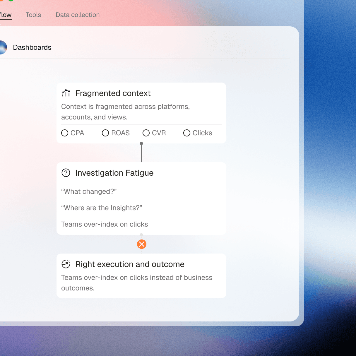Read-only connections to your marketing platforms, analytics tools, and creative engines.
